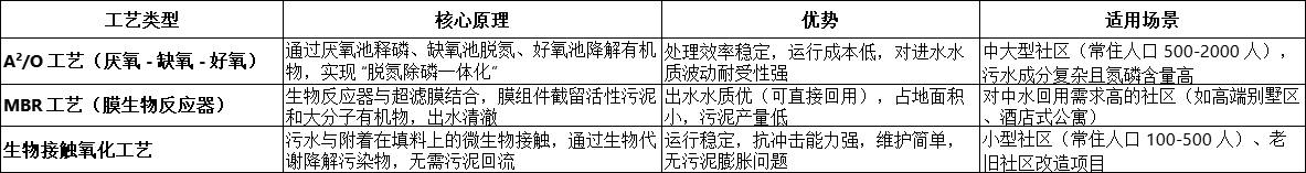 社區污水的治理效果取決于工藝選擇,需根據污水成分、處理目標及成本預算綜合考量,主流工藝包括: